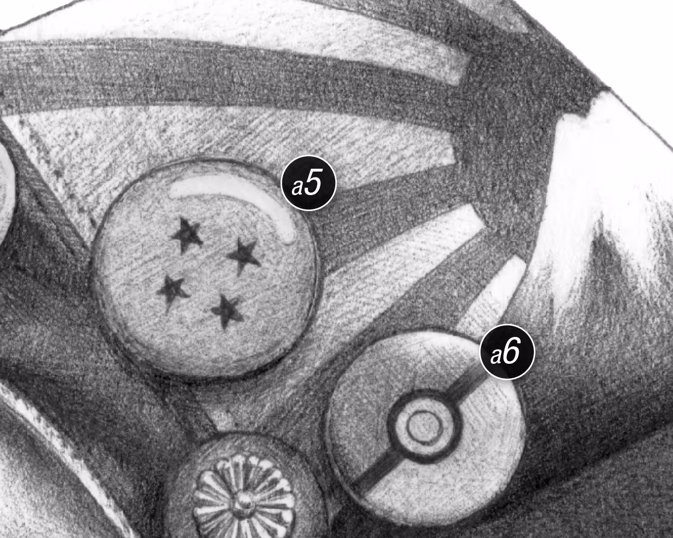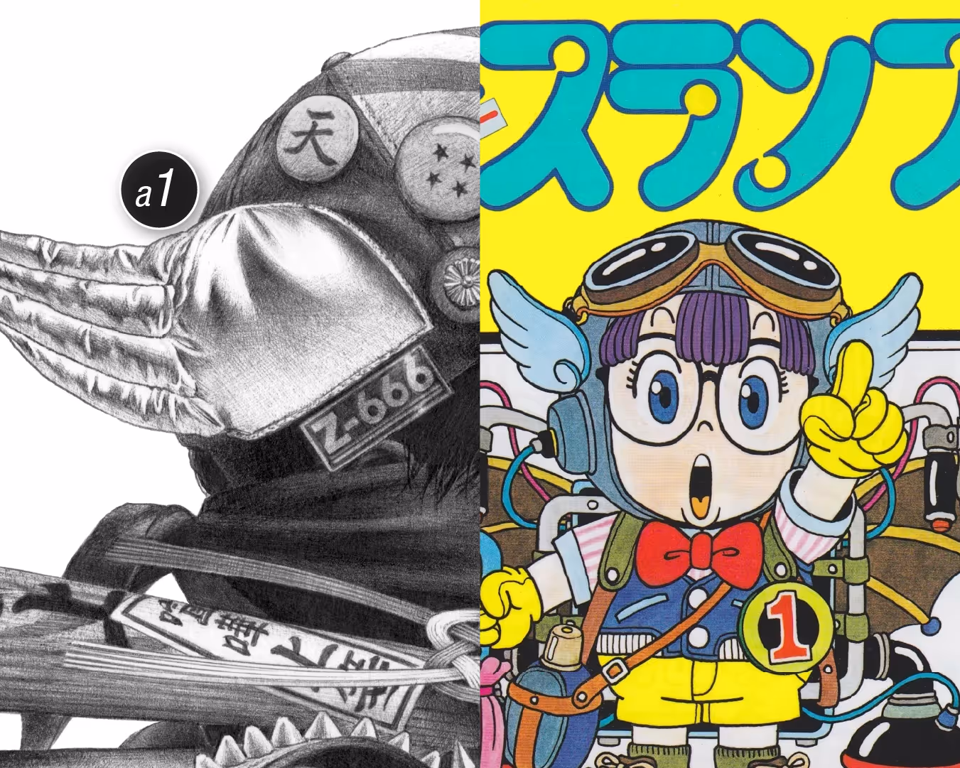A1. Cap - The cap features feathers as seen in the Japanese manga "Dr. SLUMP" by Akira Toriyama and "Domu" by Katsuhiro Otomo.