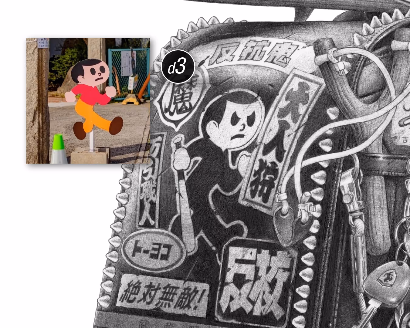 D3. "Tobita-kun" - A character from Japanese street signs, reimagined as a delinquent in my rendition.